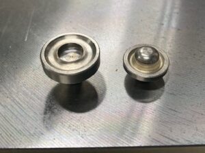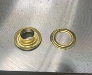 ハトメ打ちをエレシリンダーで出来ないかとの質問がありましたが、わからないのでデモ機で試す事にしました。まず、ハトメの大きさを選定して、両面ハトメ用工具(コマと呼ぶようです)を入手しました。